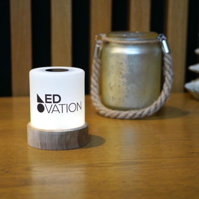 Design: Elegante Kombination aus mattiertem Glas und natuerlicher Holzbasis